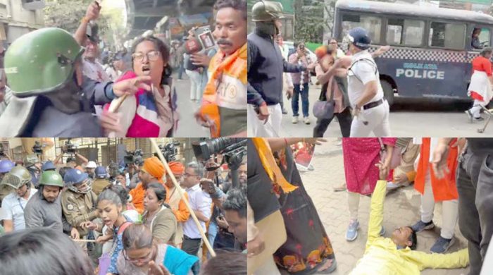 কলকাতায় বাংলাদেশ উপদূতাবাসের বাইরে হিন্দুত্ববাদীদের বিক্ষোভ-সংঘর্ষ